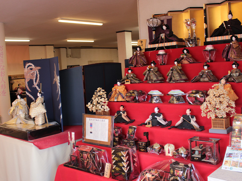 | 取扱商品 | ひな人形( 立雛・源氏雛・絆雛・創作人形 )/木目込み人形/つるし雛/羽子板/贈答人形/市松人形/日本人形/童人形/五月人形/大将人形/鎧飾り/兜飾り/着用鎧/着用兜/鯉のぼり/室内鯉のぼり/金太郎/桃太郎/破魔弓/各種ガラスケース |