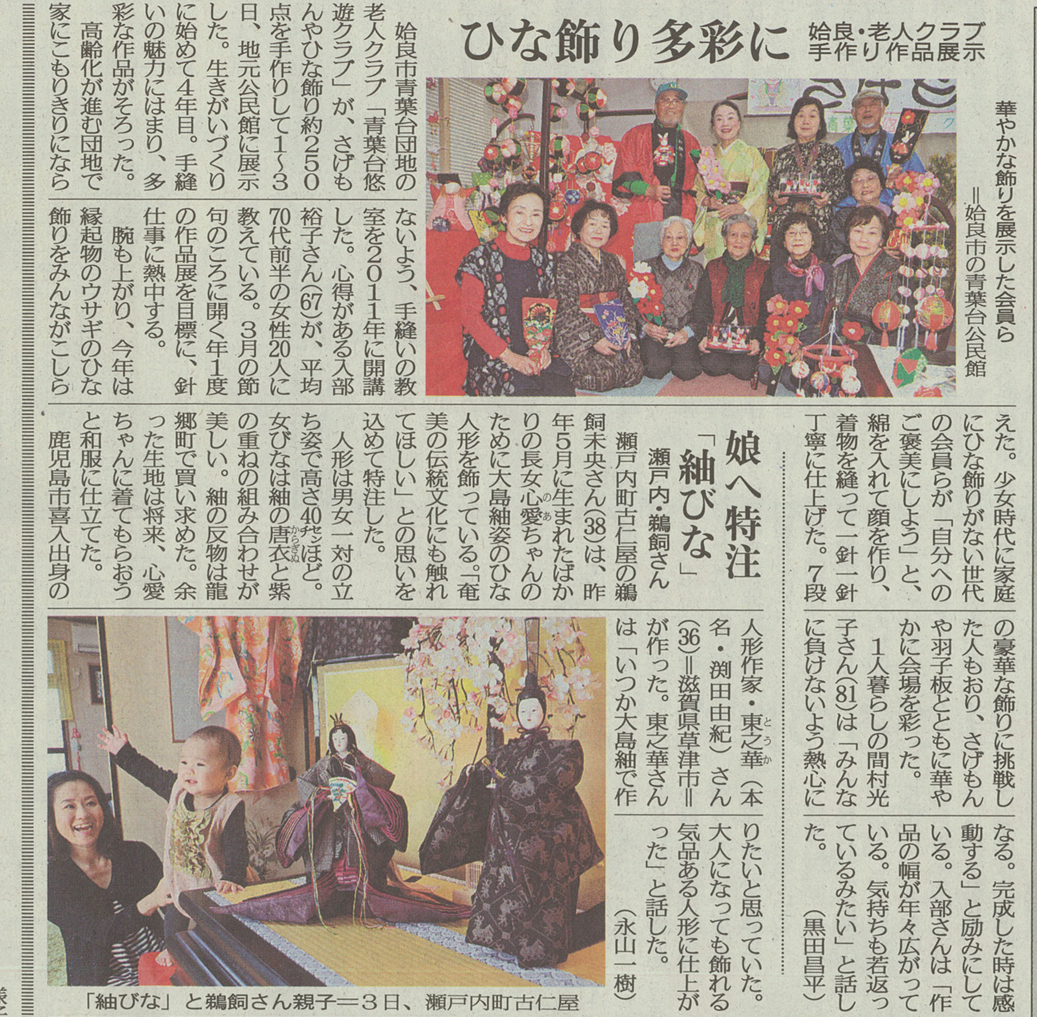 その後も鹿児島県で「Welcome Doll」を発表し、南日本新聞に掲載されるなど、創作活 動の幅を広げていった。