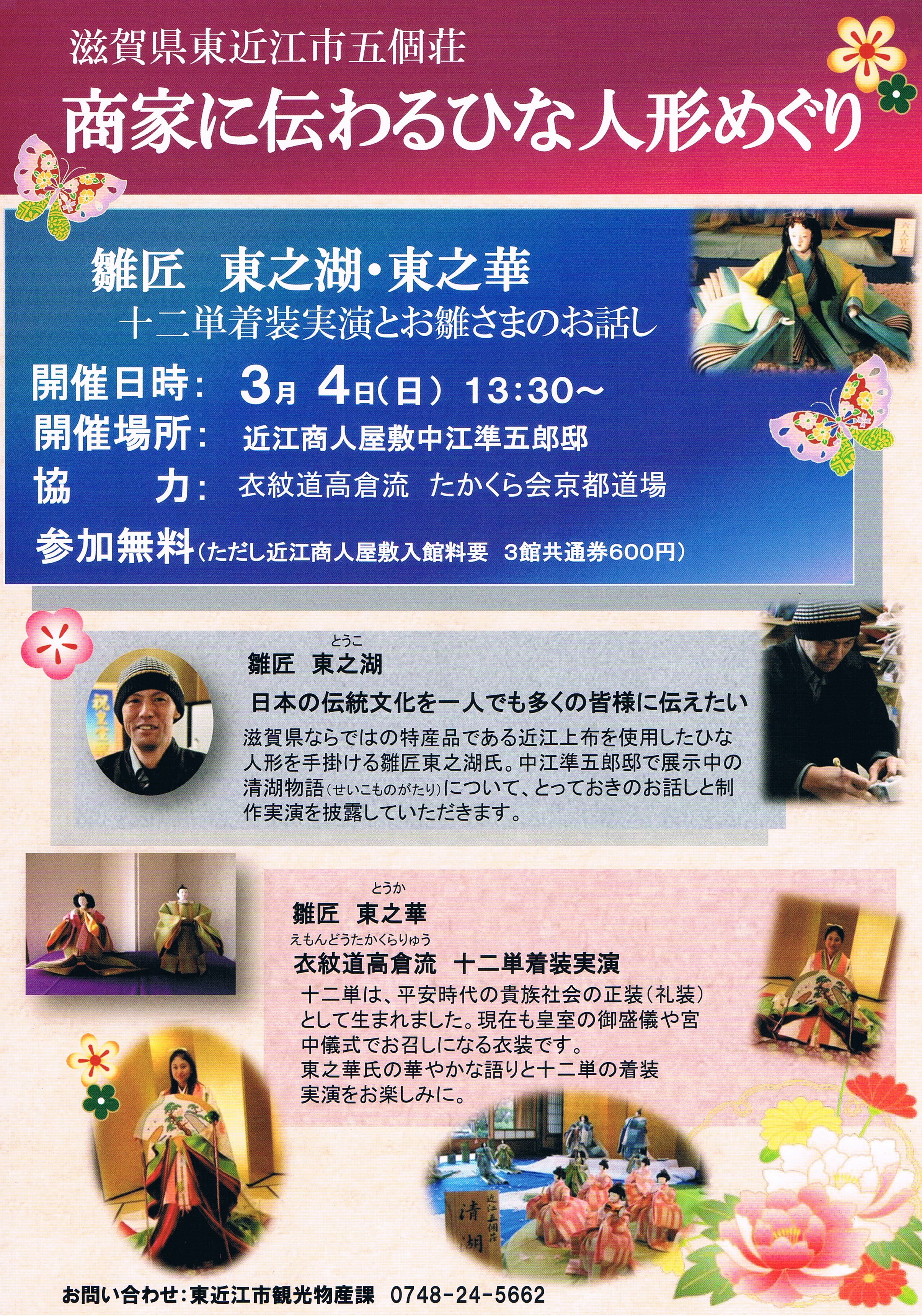 東之湖と東之華の実演とお雛様のお話出演